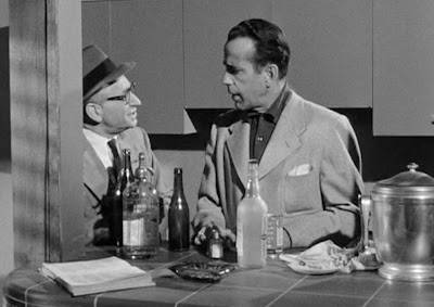 Director Nicholas Ray loved him some insane abusive men. The link between Dixon and James Mason's tyrannical father in BIGGER THAN LIFE is clear: Hollywood is (or was) the place where white rage fights, shooting, drugs and casual sex are wantonly indulged in, thought about, and depicted for the enjoyment of the world. Certainly Ray indulged in these things in real life--his appetite is legend--but his love makes him different than the poseurs of violence and despair. His forgiveness of his fucked up protags is his way, perhaps, of trying to forgive his own trespasses. Like Sal Mineo's tortured puppy killer in REBEL WITHOUT A CAUSE, or Mason's cortisone-fueled madness in BIGGER THAN LIFE, Bogart's violence is considered an illness for our shocked empathy as well as fear. Both BIGGER and IN A LONELY PLACE show a man who thinks you are swooning at his brilliance and fearless spending instead of cringing in embarrassment like his abused love.