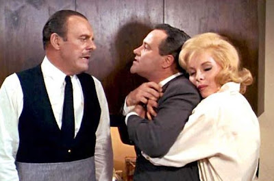 In HOW TO MURDER YOUR WIFE (1965), Jack Lemmon tangles with a similarly needy lady but she's young and hot, like MASK-era Diaz, so his treatment of her as if she's a suffocating drag makes no sense whatsoever. A comic strip writer whose work is nationally syndicated ("The Adventures of Brash Brannigan" - a character similar to Tom Cruise in KNIGHT) and living the NYC bachelor dolce vita, Lemmon winds up married to hot Italian Virna Lisi after she pops out of a bachelor party cake and he's too drunk to understand she's misunderstood his lewd proposition. Still, Lemmon could get used to her if his agent's shrewish wife wasn't brainwashing her to be a jealous harridan, instigating her crashing his gentleman's club because she's sure he's with another woman, the kind of thing she might do when she's Cameron's age in KNIGHT, but which makes no sense in her present 'pristine mint' condition.