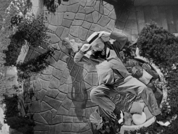 This thirst for freedom, the ferocity of chasing your dreams, even if the dream is destruction, even if it pulls you from the forward movement of time into a vertical plunge, this is the definition of America being pulled out of its isolationist stance into the war in Europe. Here, Fields jumps out the window and is taking a chance, that's the point, as he tells Og Oggilby in his previous film, The Bank Dick (1940): "My uncle, a balloon ascensionist, Effingham Hoofnagle, took a chance. He was three miles and a half up in the air. He jumped out of the basket of the balloon and took a chance of landing on a load of hay."