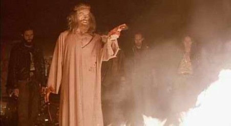 Meanwhile old Herbert Lom stays totally inscrutable - is he good or bad? We don't know for half the film--he could be either a Castavet in ROSEMARY or a Merrin in EXORCIST. But either way, we worry about Miriam's boundaries. Avoiding bringing Herbert Lom home is the first thing parents teach children, so she's definitely an orphan and definitely missed a lot of key survival tips most kids glean before they graduate the sixth grade. Mockeries of things like the Shroud of Turin (a dirty hanky on his face later kills people through suffocation); a girl crucified, one frightened by a snake, the kids wearing weird WICKER MAN-style pagan masks, a mysterious Asian lady in red trying to steal the dirty shroud hankie and Curtis fighting to keep it with all her might, though she can't possibly want it, all proving if nothing else that like Argento, Soavi has seen BLOW-UP a dozen times, if one can really be said to have seen it, or anything, really....